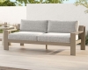 - Sofa ngoài trời với sự kết hợp hài hòa giữa gỗ tự nhiên và đệm chống nước mang lại sự thoải mái, ấm cúng. Kích thước: 1800 x 850 x 650