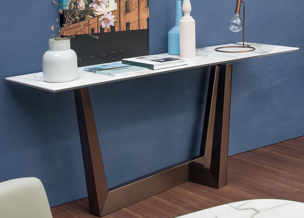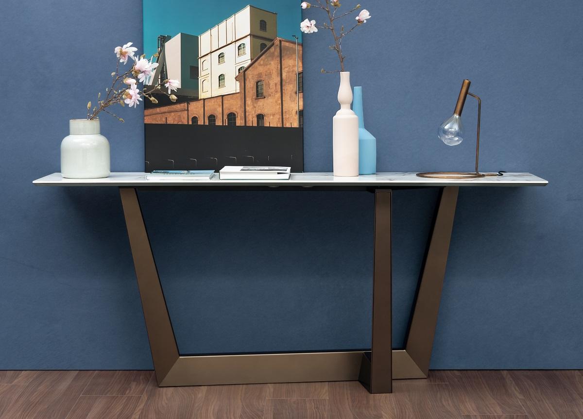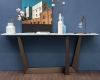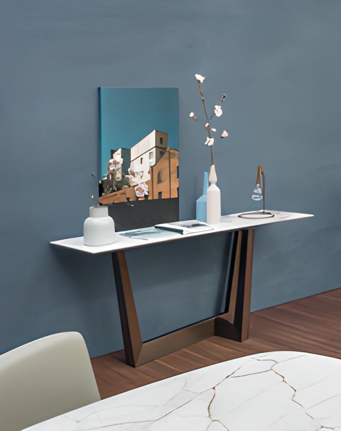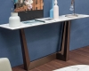 - Bàn có khung làm bằng gỗ tự nhiên, chân đế hình thang tăng sự chắc chắn, mặt bàn có thể làm bằng gỗ tự nhiên hoặc đá marble. Kích thước: 1400 x 350 x 900