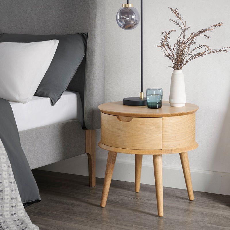 - Được làm bằng gỗ óc chó gồm 4 chân và một hộc, với thiết kế cong tròn tạo nên điểm nhấn cho căn phòng ngủ của bạn. Kích thước: d450 x 500