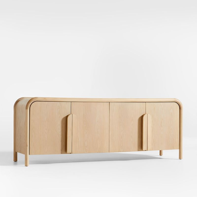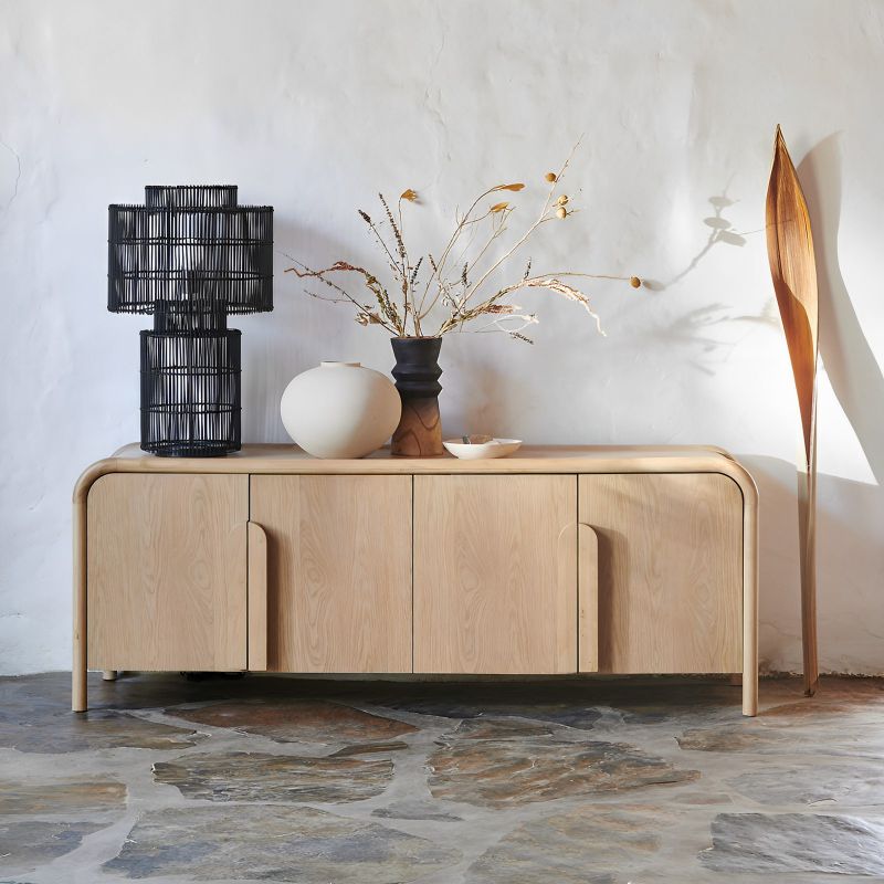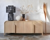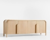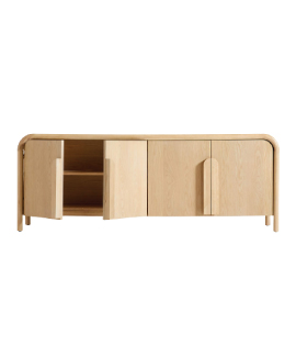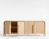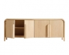 - Kệ Tivi làm bằng gỗ sồi trắng với thiết kế hình vòng cung thanh mảnh bao quanh khung tủ. Kích thước: 2000 x 500 x 750