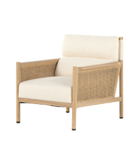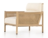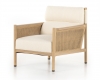 - Ghế với thiết kế hiện đại kết hợp giữa khung gỗ tự nhiên, mây đan và đềm bọc vải. Kích thước: 750 x 750 x 750
