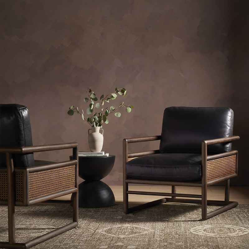 - Khung gỗ tự nhiên, đệm ngồi bọc da Kích thước: 690 x 850 x820