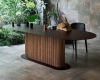 - Bàn ăn làm từ gỗ tần bì nhuộm màu óc chó sang trọng kết hợp mặt đá marble. Kích thước: 2200 x 900 x 750
