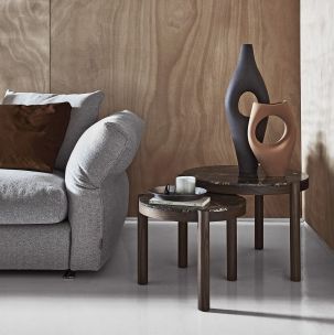 - Chiếc bàn có khung làm từ gỗ óc chó hoặc gỗ tần bì, có thể chọn từ nhiều lớp hoàn thiện khác nhau. Mặt bàn được làm từ đá cẩm thạch. Có ba kích cỡ khác nhau để lựa chọn. Kích thước: 6.500.000