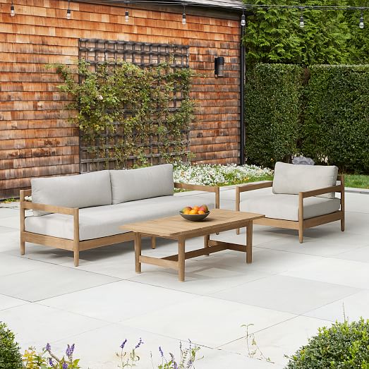 - Ghế sofa ngoài trời gỗ sồi tự nhiên kết hợp đệm được bọc bằng vải 100% polyester chịu được mọi thời tiết. Kích thước: 1900 x 800 x 800