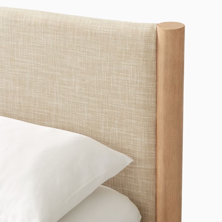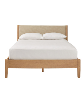 - Giường được làm bằng gỗ sồi tự nhiên chắc chắn. Chân tròn duyên dáng mộc mạc, đầu giương được bọc vải lanh làm mềm khung gỗ Kích thước: 1900 x 2100 x 1150