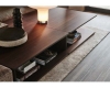 - Bàn có hình chữ nhật hoặc vuông, bao gồm hai đỉnh với các cạnh vát. Chế tạo từ gỗ sồi, bàn có tùy chọn mặt trên đá cẩm thạch hoặc gỗ nguyên khối. Kích thước: 1200 x 700 x 400