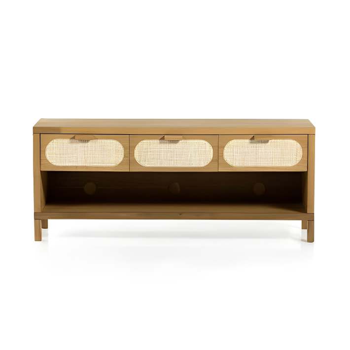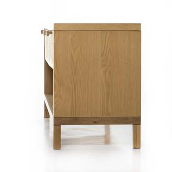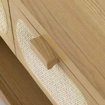 - Thiết kế hiện đại với sự pha trộn giữa gỗ sồi và mây đan, phụ kiện Hafele cao cấp. Kích thước: 1800 x 450 x 670