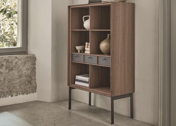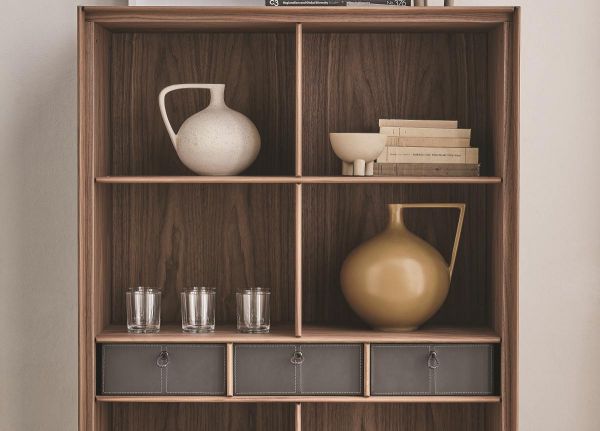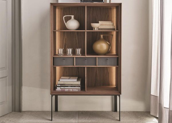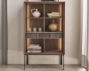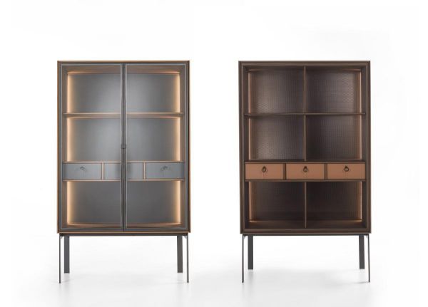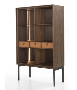 - Một chiếc tủ bằng gỗ óc chó có cửa kính với đế bằng kim loại thiếc màu xám. Mặt sau bằng kim loại đồng hoặc gỗ. Bên trong được trang bị đèn LED có thể điều chỉnh độ sáng. Kích thước: 900 x 600 x 1600