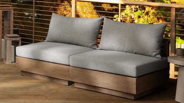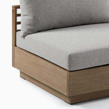 - Ghế sofa ngoài trời gỗ sồi tự nhiên kết hợp đệm được bọc bằng vải 100% polyester chịu được mọi thời tiết. Kích thước: 900 x 820 x 620