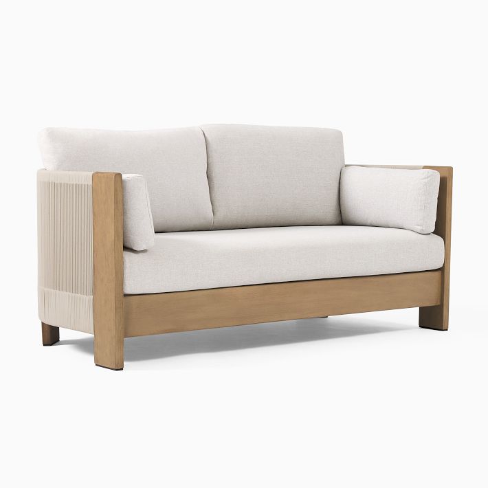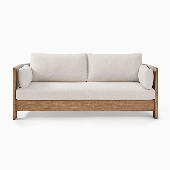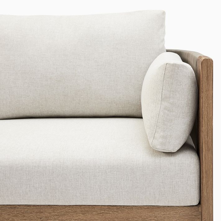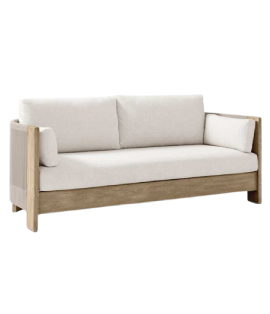 - Ghế sofa ngoài trời gỗ sồi tự nhiên kết hợp đệm được bọc bằng vải 100% polyester chịu được mọi thời tiết. Kích thước: 1800 x 800 x 800