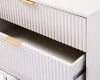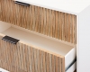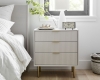 - Tab đầu giường làm bằng gỗ tự nhiên kết hợp chân sắt chắn chắn. Ba ngăn kéo mơ trên rây trượt kim loại, mặt trước được ốp phôi gỗ lượn sóng. Kích thước: 550 x 450 x 650