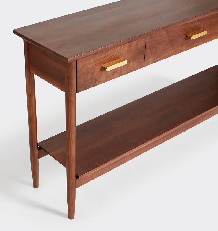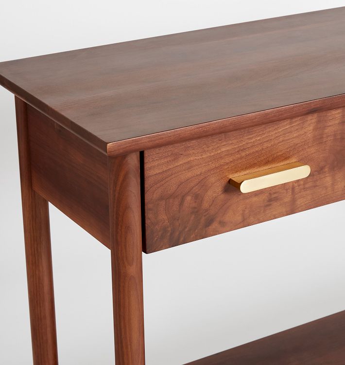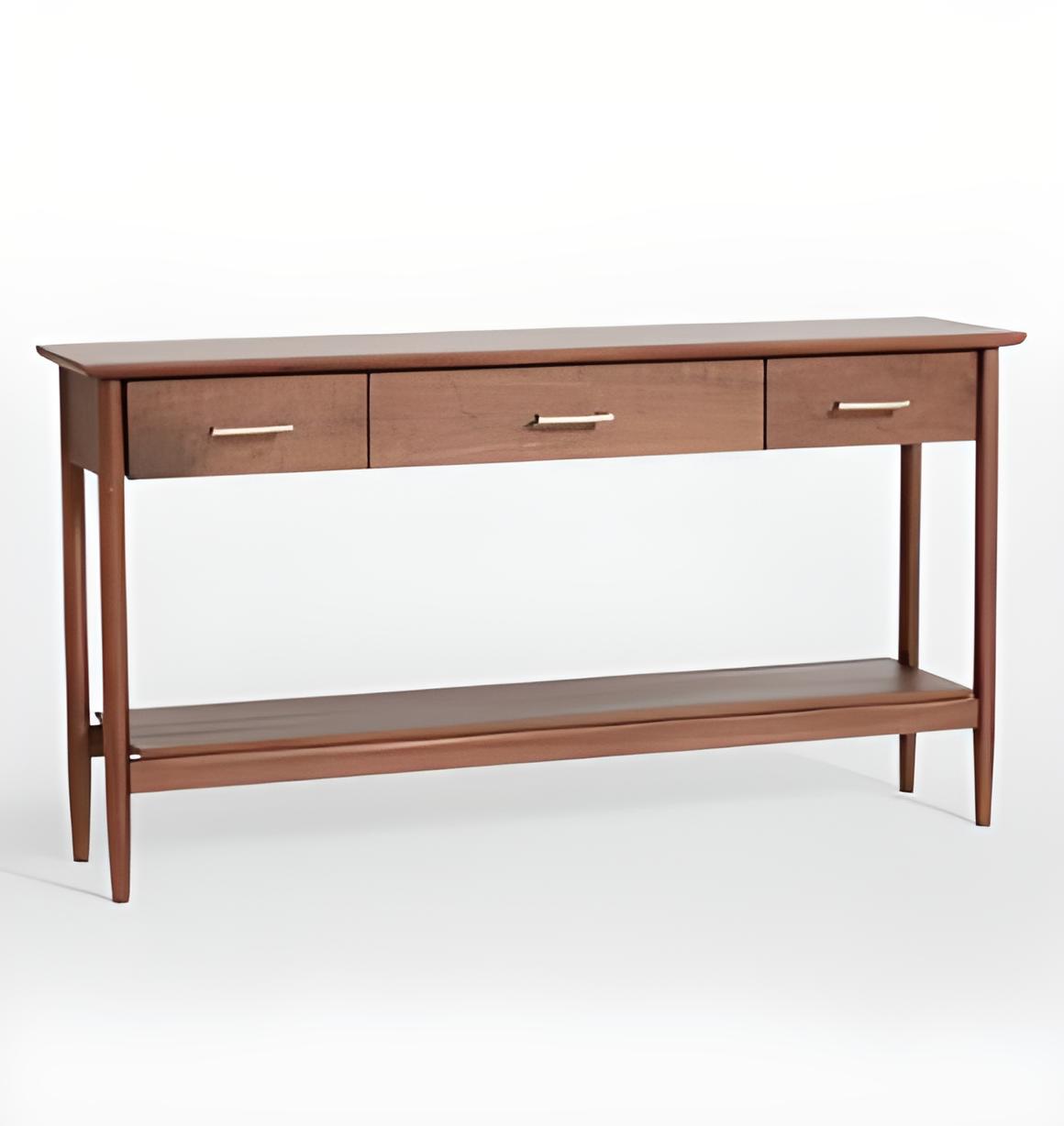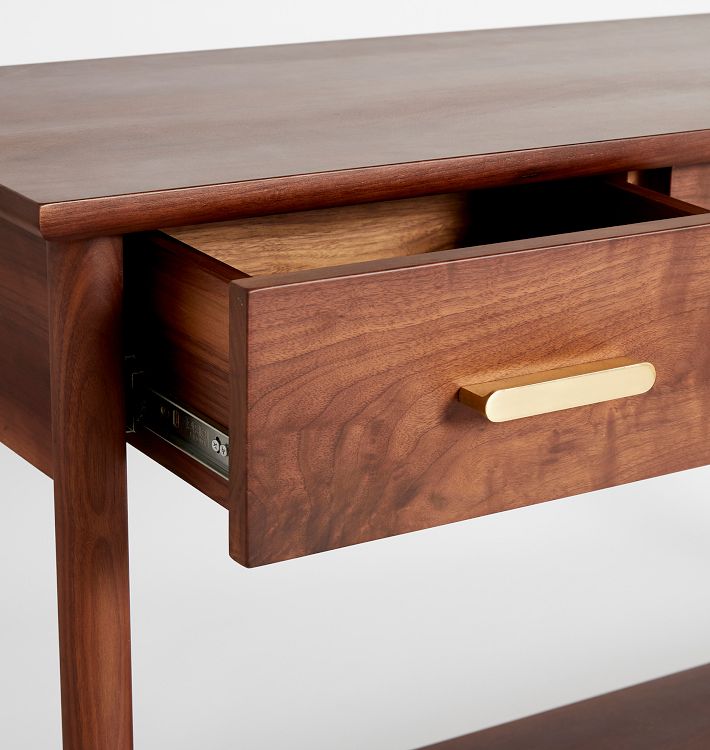 - Chân thon, các góc nhẵn kết hợp với nhau đã tạo nên một chiếc bàn tinh tế và sang trọng. Hoàn chỉnh với ba ngăn kéo và một kệ lớn bên dưới để lưu trữ dễ dàng. Kích thước: 1200 x 400 x 900