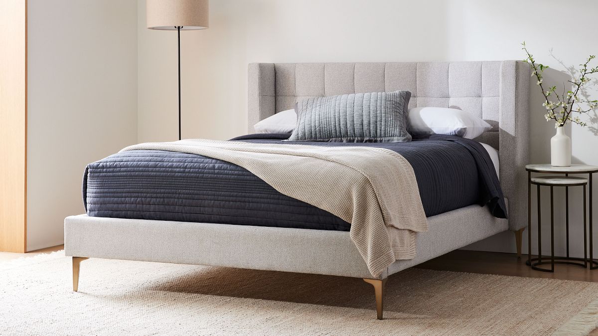 - Giường ngủ với kết cấu bằng gỗ sồi và đệm bọc vải. Chân đế làm bằng sắt sơn đen chắc chắn. Tựa lưng thoải mái có thể tận dụng như 1 chiếc ghế sofa. Kích thước: 1880 x 2080 x 1100