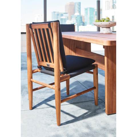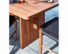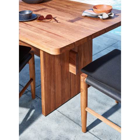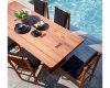 - Bàn ăn gỗ tự nhiên với các chi tiết trang trí bằng gỗ, các đường khảm thắt nơ chạy dọc theo mặt trên bàn ăn. Thanh giá đỡ đi qua các chân tăng sự tinh tế và chắc chắn cảu bàn ăn. Kích thước: 2400 x 900 x 750