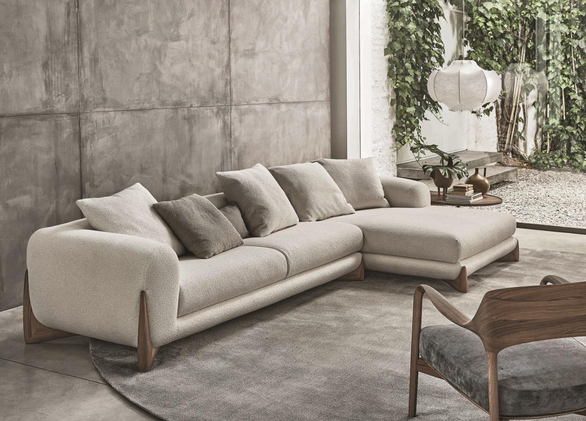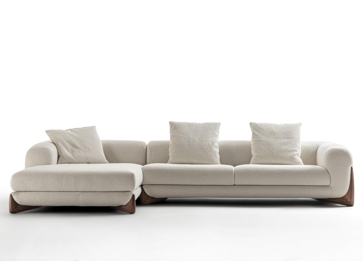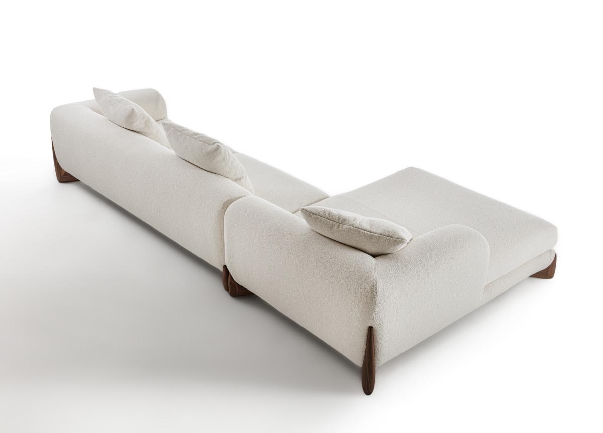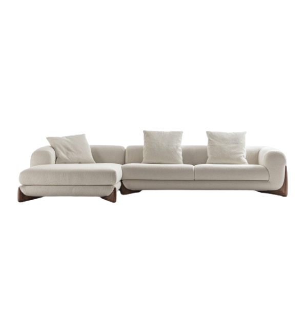 - Ghế sofa kiểu mô-đun có cấu trúc bên trong và 4 chân bằng gỗ sồi, lớp đệm ghế được bọc bằng vải bông, vải nhung. vỏ có thể tháo rời bằng vải hoặc cố định bằng da. Kích thước: : 2800 x 900 x 650