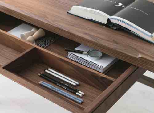 - Một chiếc bàn thanh lịch với đường nét đơn giản tinh tế. Các ngăn kéo bằng gỗ óc chó chắc chắn tô điểm thêm cho bàn làm việc. Kích thước: 1200 x 650 x 750