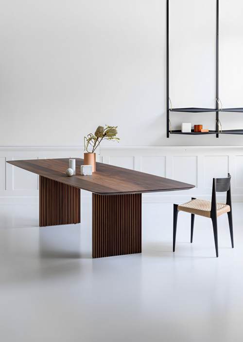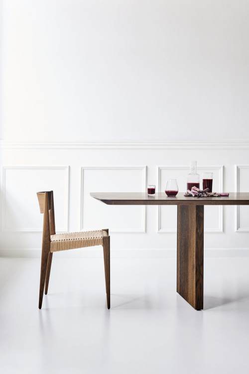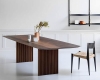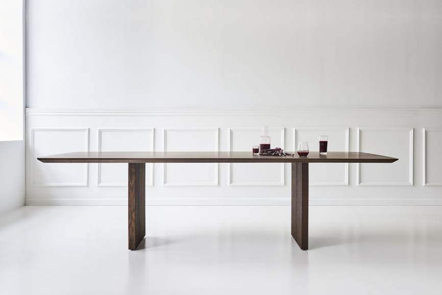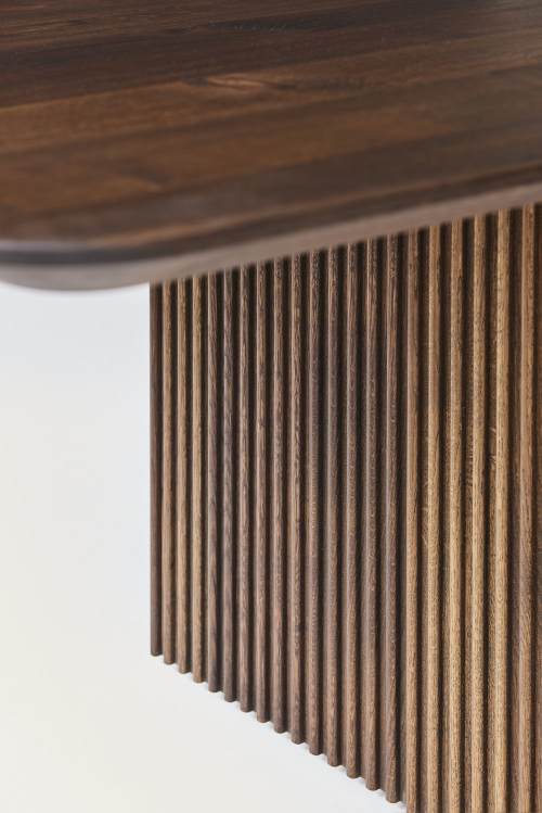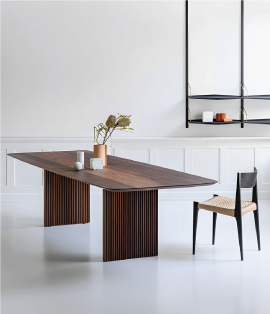 - Mặt bàn và chân bàn của được làm bằng gỗ nguyên khối, tuy nặng về kích thước và trọng lượng nhưng bàn vẫn toát lên sự nhẹ nhàng, được nhấn mạnh bởi các chi tiết được chế tác tinh xảo. Kích thước: 2000 x 900 x 750