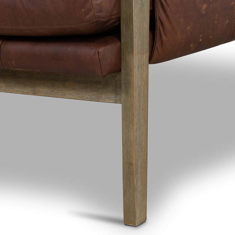 - Ghế armchair khung gỗ tự nhiên chắc chắn, đệm bọc da có độ bền cao. Kích thước: 750 x 750 x 750