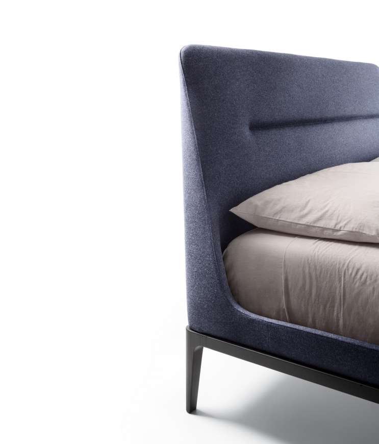 - Giường ngủ có cấu trúc bằng gỗ sồi và đệm bọc vải có thể thế tháo rời. Đầu giường cao và hơi cong ở hai bên, được tô điểm bằng đường khâu ở giữa. Kích thước: 1900 x 2100 x 1000