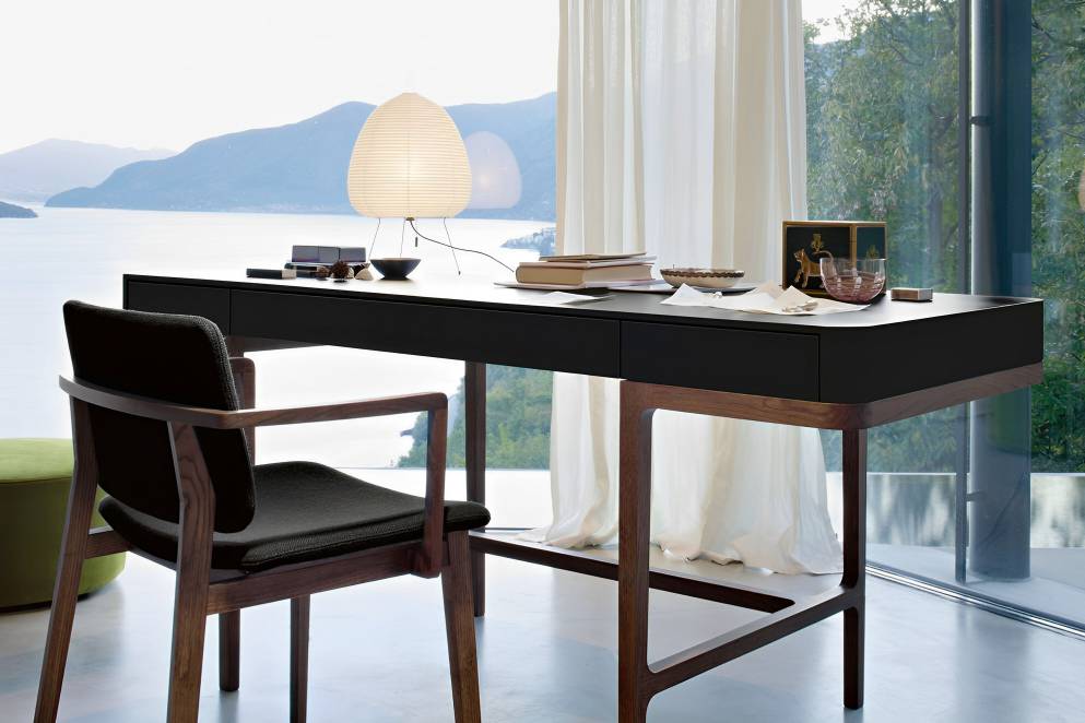 - Bàn làm việc Vitie được hoàn thiện đẹp mắt bằng cách cân bằng màu sắc giữa đế gỗ nguyên khối với mặt trên sơn mài bóng hoặc mờ. Kích thước: 1400 x 700 x 750
