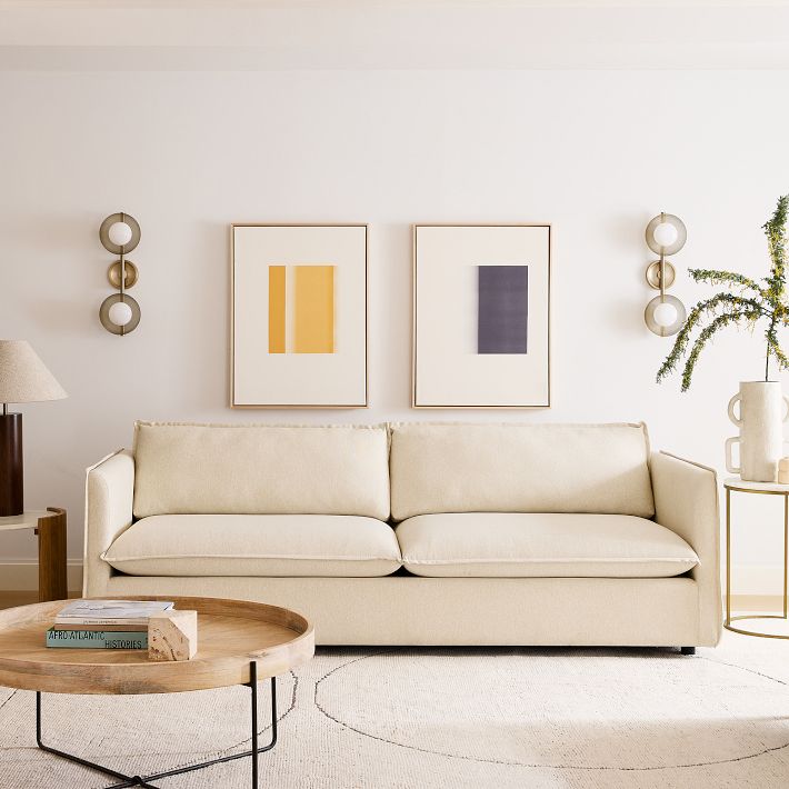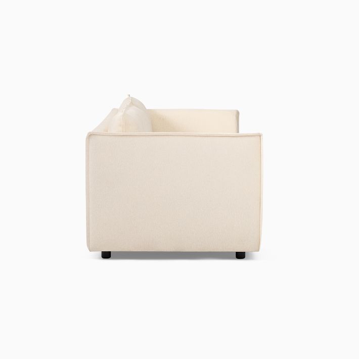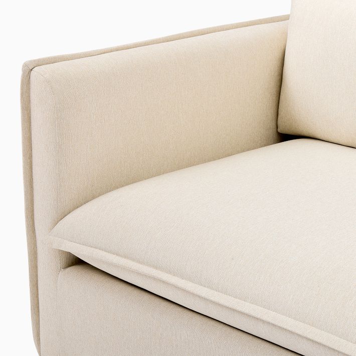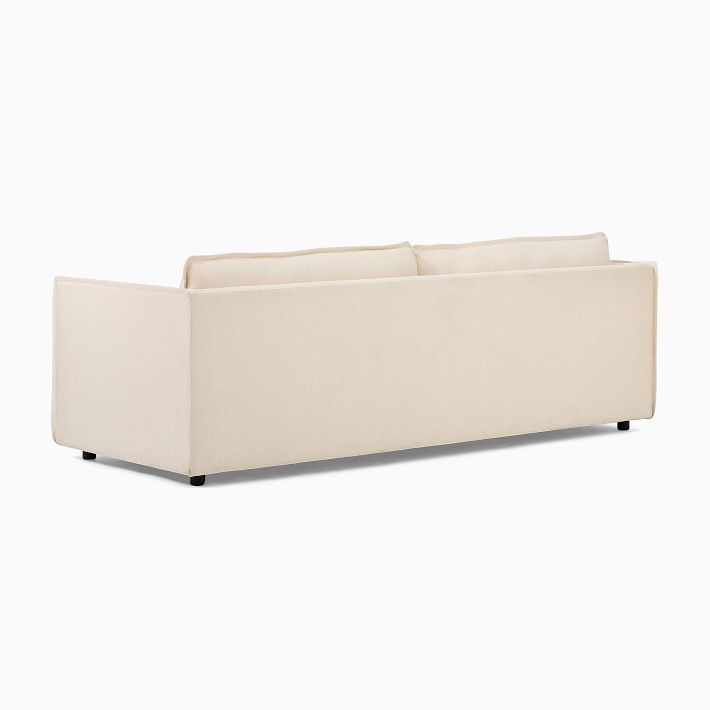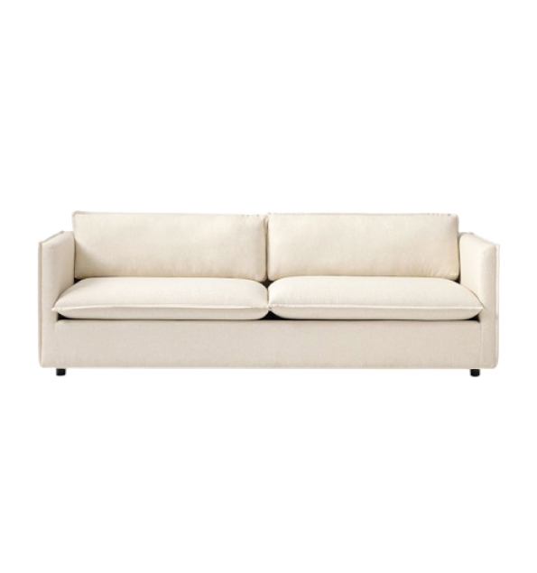 Ghế sofa được làm với khung gỗ sồi tự nhiên và chân sắt sơn đen. Đệm ghế được làm từ lõi xốp polyure